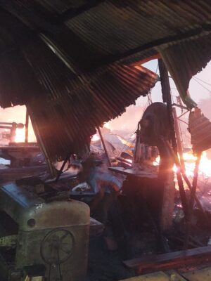 The intense fire, which had engulfed several shops containing wooden planks and hardware materials, was brought under control through a coordinated effort. The fire was confined at 6:26 a.m. and fully extinguished by 11:44 a.m.