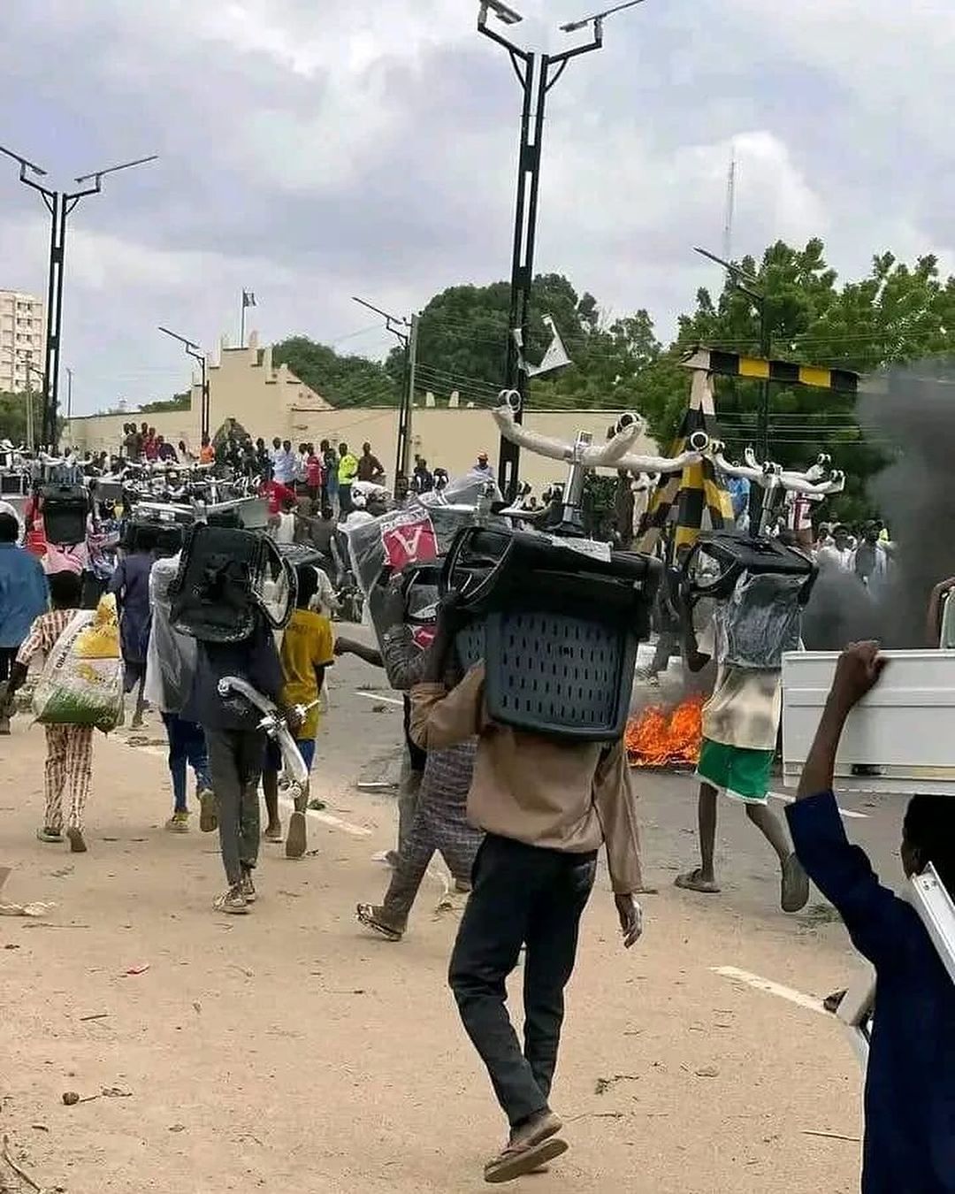 Images showing some youths carrying looted items from an Industrial Park in Kano